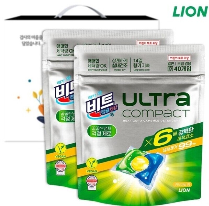 [밸류업] 비트 캡슐 제로 울트라 콤팩트 세제 40캡슐 x 2개 (총80캡슐)